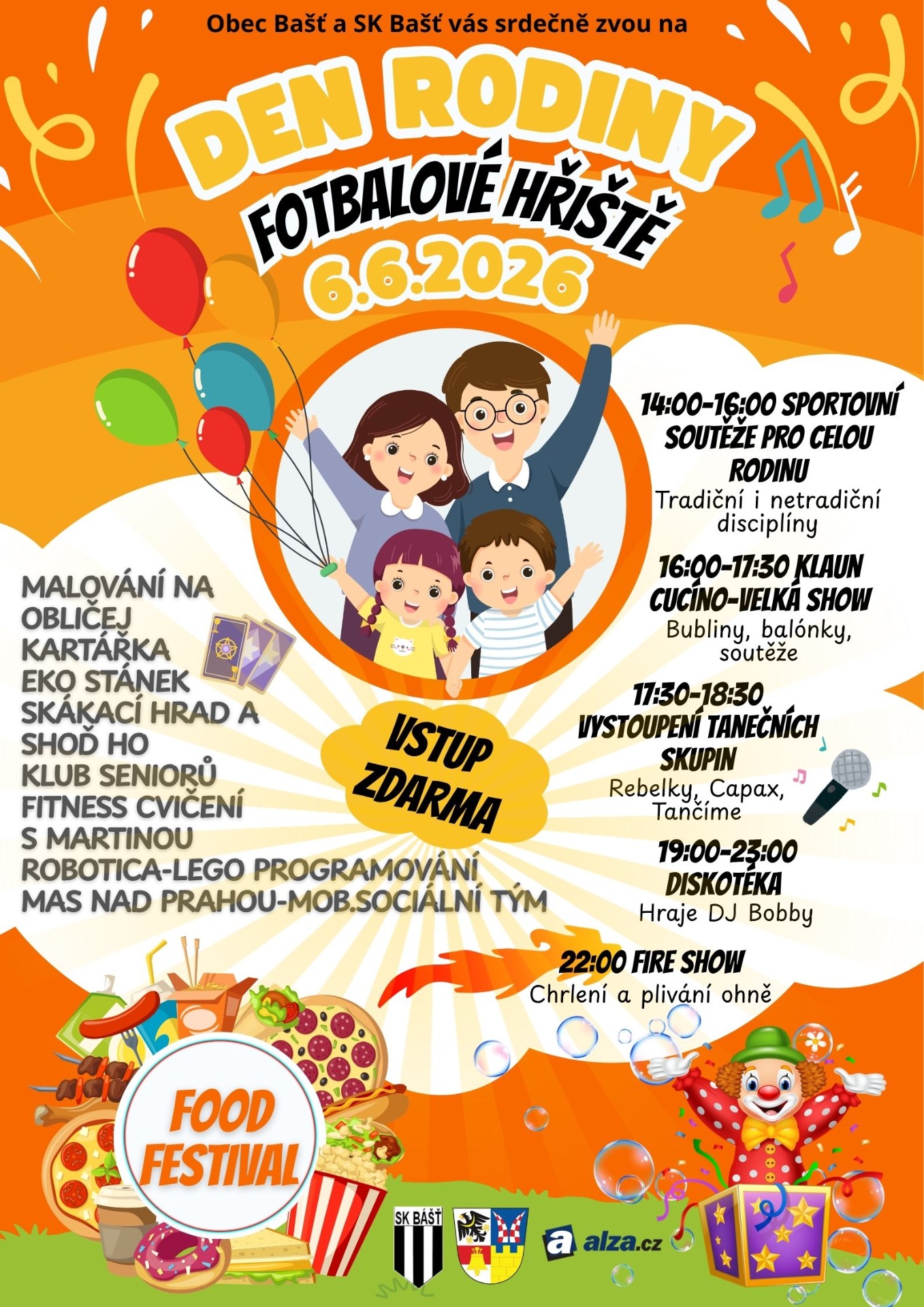 Připravte se na den, na který budete ještě dlouho vzpomínat! Srdečně vás zveme na Den rodiny, který rozzáří fotbalové hřiště dne 6. června 2026. Čeká vás pořádná dávka radosti, smíchu a nezapomenutelných zážitků pro malé i velké, prostě pro všechny bez ohledu na věk! Co vás čeká?