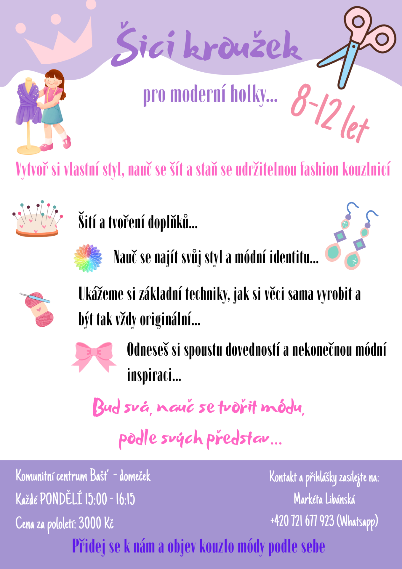 Pro moderní holky od 8 do 12 let otevíráme zbrusu nový šicí kroužek v Domečku Komunitního centra.