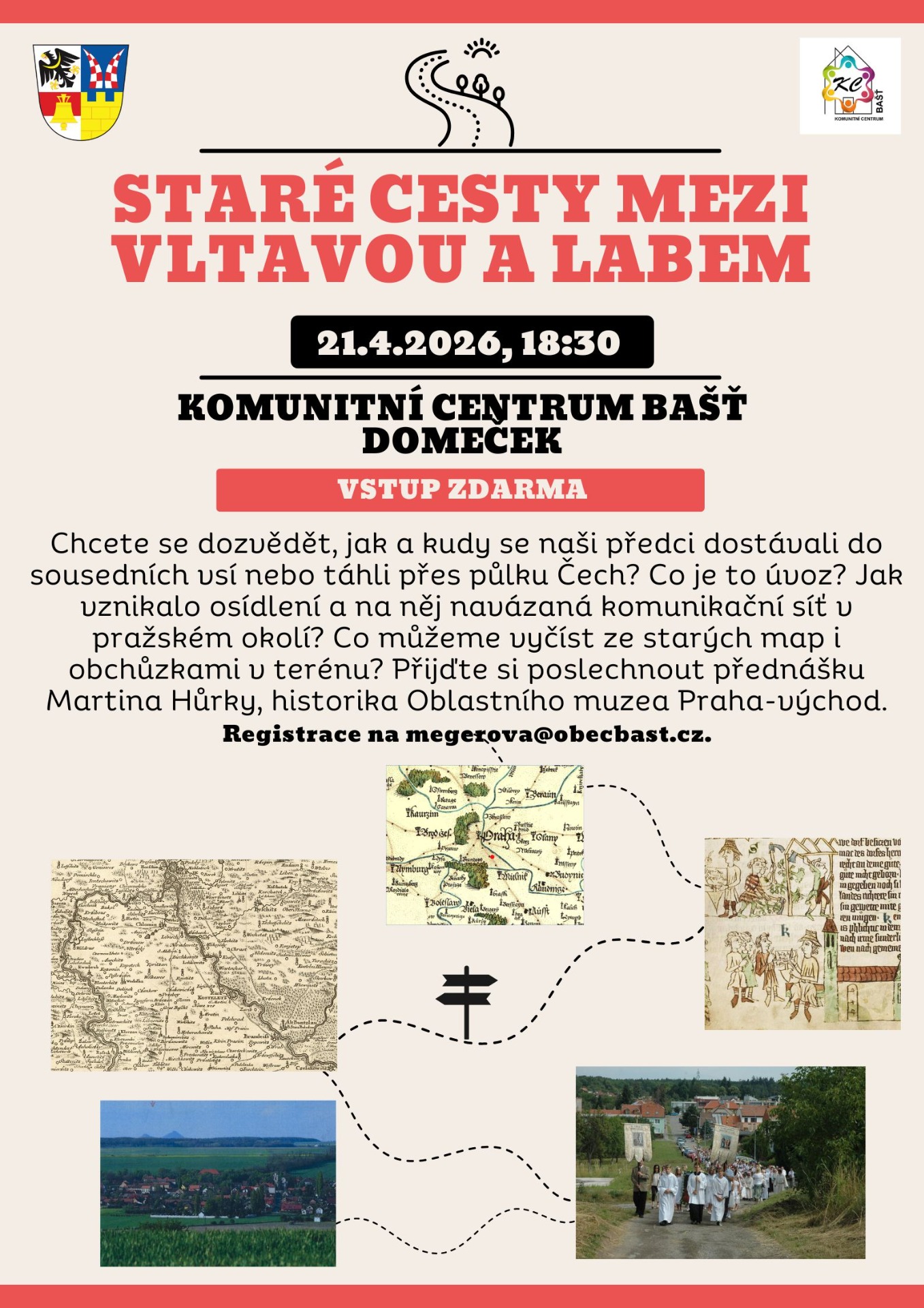 Chcete se dozvědět, jak a kudy se naši předci dostávali do sousedních vsí nebo táhli přes půlku Čech? Co je to úvoz? Jak vznikalo osídlení a na něj navázaná komunikační síť v pražském okolí? Přijďte si poslechnout přednášku Martina Hůrky, historika Oblastního muzea Praha-východ. Uskuteční se v Domečku Komunitního centra Bašť v úterý 21.dubna od 18:30 hodin. Registrace předem je nutná na megerova@obecbast.cz
