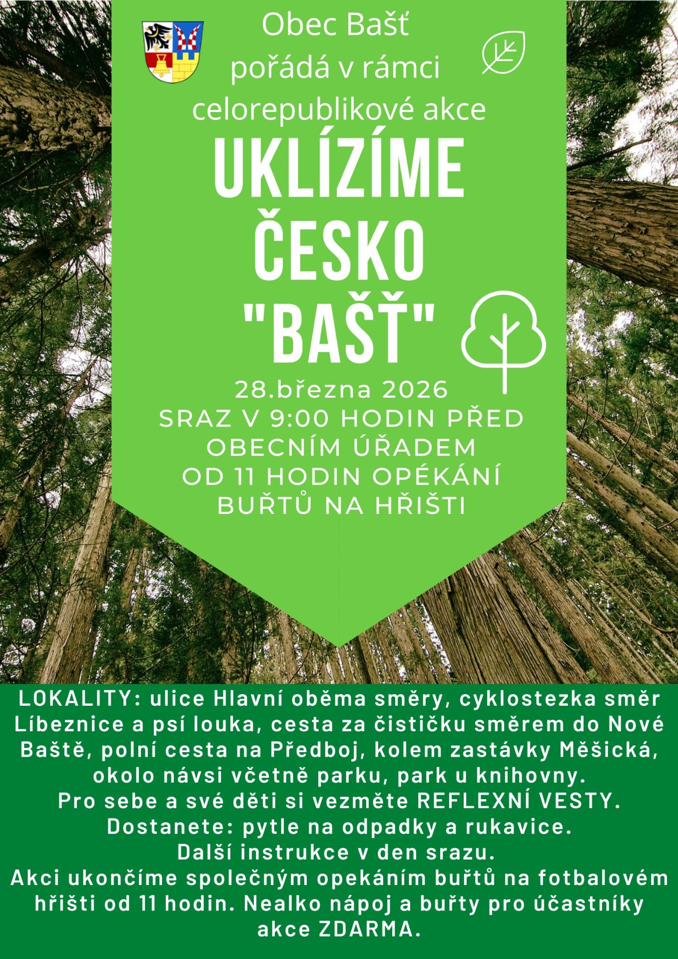 Obec Bašť se zapojuje v sobotu 28.3. do celorepublikové akce Uklízíme Česko.