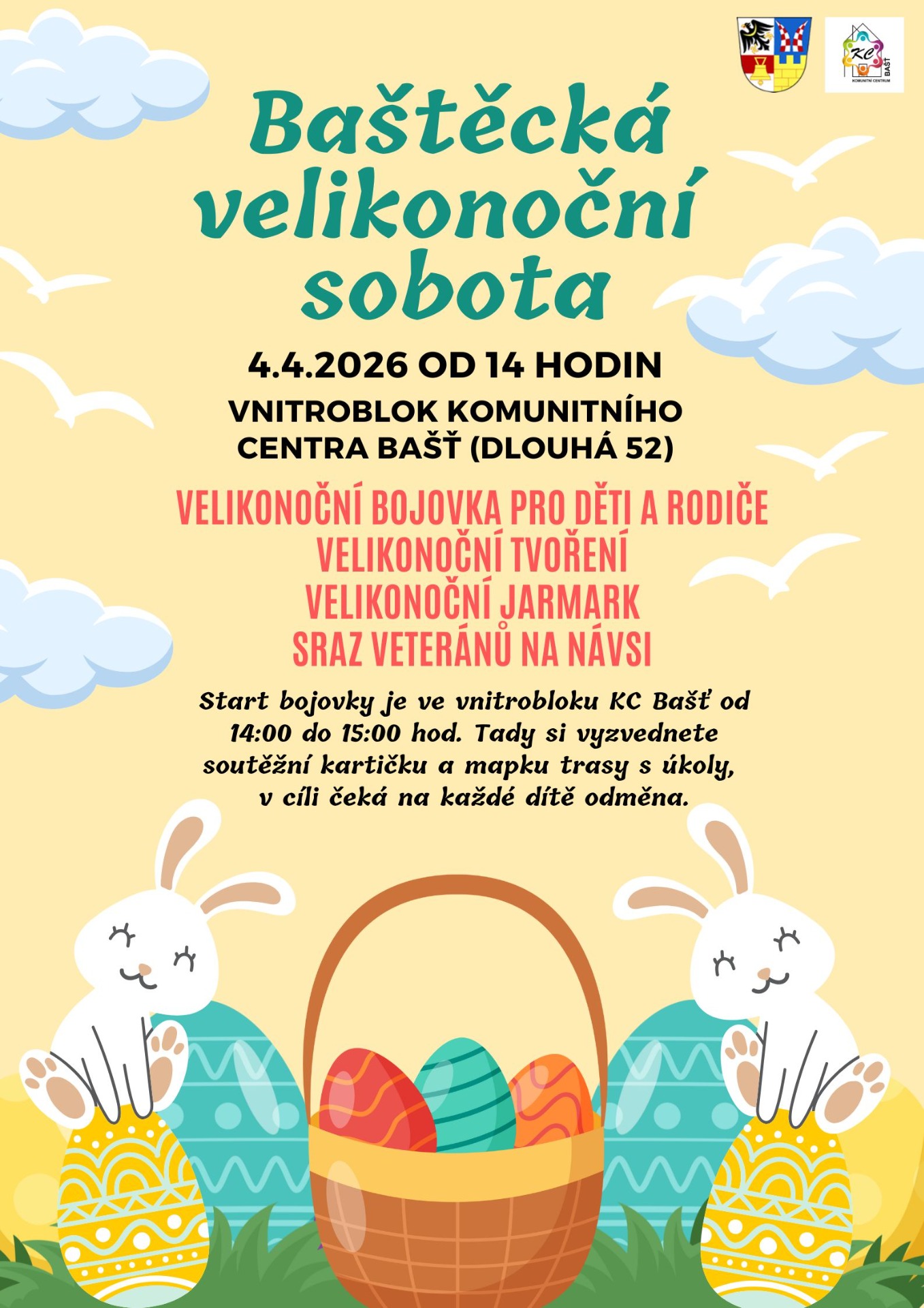 4. dubna 2026 od 14:00, vnitroblok Komunitního centra Bašť (Dlouhá 52)